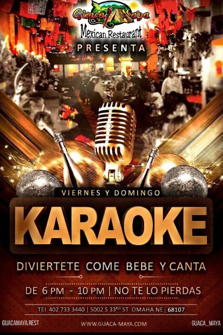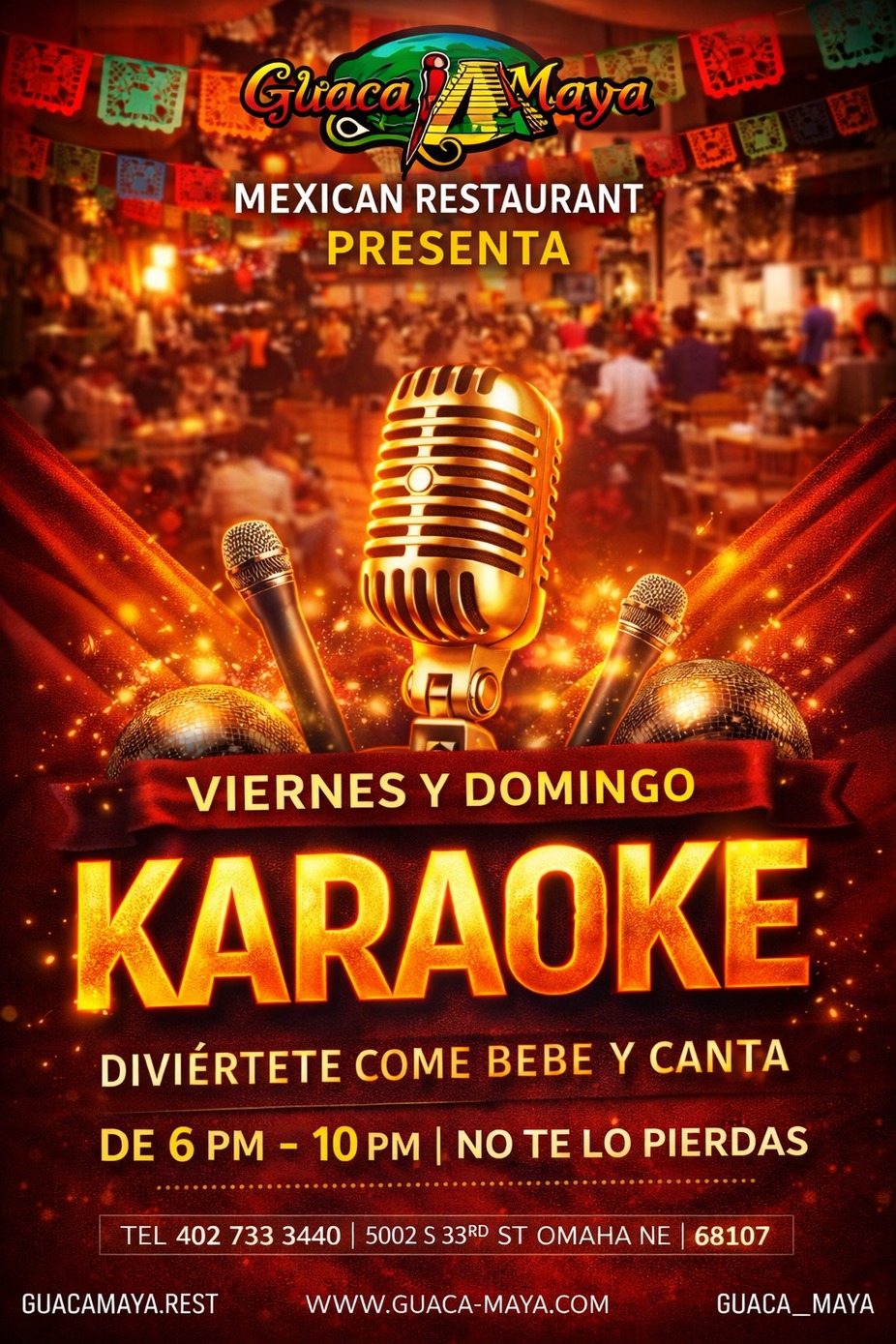 🎤 ¡Karaoke Viernes y Domingo! 🕕 6PM–10PM Ven a comer, beber y cantar con nosotros 🎶🔥 🎤 Karaoke Fridays & Sundays! 🕕 6PM–10PM Eat, drink & sing with us 🎶🔥 📍 Guaca Maya #KaraokeNight #GuacaMaya #Omaha