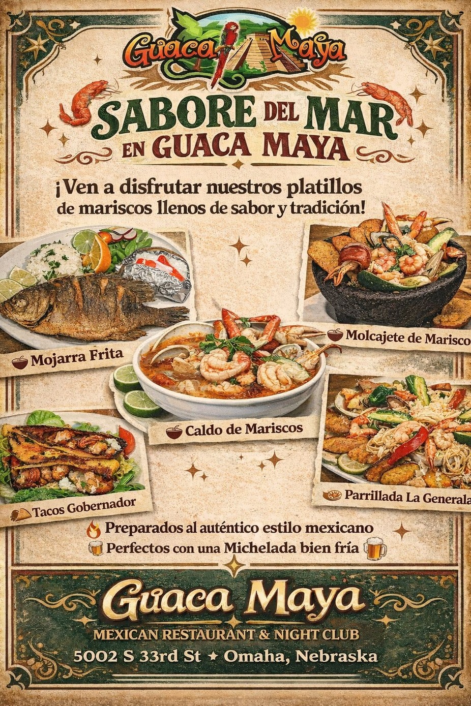 🌊✨ CUARESMA SABE MEJOR EN GUACA MAYA ✨🌊 La temporada de Cuaresma ya está aquí… y nuestros platillos del mar están listos para sorprenderte 🦐🐟 Disfruta sabores frescos, recetas tradicionales y ese toque auténtico mexicano que solo encuentras en Guaca Maya 🙌 Ven con tu familia, invita a tus amigos y comparte una comida llena de sabor y buenos momentos. 📍 Guaca Maya – Omaha ────────────── 🌊✨ LENT TASTES BETTER AT GUACA MAYA ✨🌊 Lent season is here… and our seafood dishes are ready to impress 🦐🐟 Enjoy fresh flavors, traditional recipes, and authentic Mexican taste you’ll love. Bring your family, invite your friends, and enjoy a meal full of flavor and good vibes. 📍 Guaca Maya – Omaha